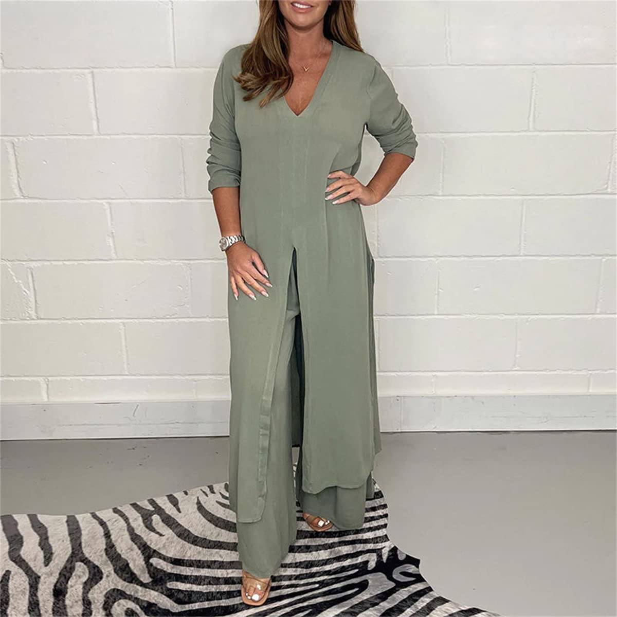 • Flattering Fit – Long top and tailored pants designed to complement every figure.